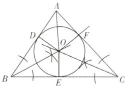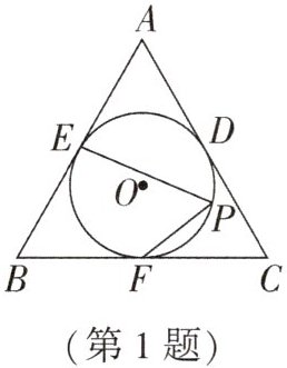 1.(金华中考)如图,$\odot O是等边\triangle ABC$的内切圆,分别切AB,BC,AC于点E,F,D,P是$\widehat {DF}$上一点,则$∠EPF$的度数是 (