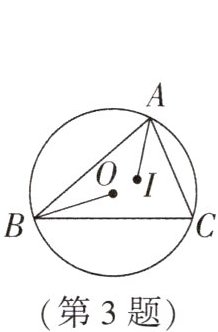 3.(2023·聊城中考改编)如图,点O是$\triangle ABC$外接圆的圆心,点I是$\triangle ABC$的内心,连接OB,IA.若$∠CAI= 35^{\circ }$,则$∠OBC$的度数为____