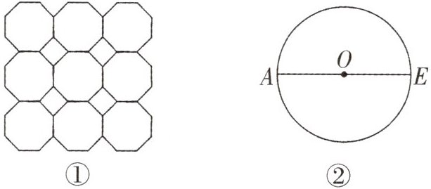 4. 图①是我们常见的地砖上的图案,其中包含了一种特殊的平面图形——正八边形。如图②,AE 是$\odot O$的直径,用直尺和圆规作$\odot O$的内接正八边形 ABCDEFGH。(不写作法,保留作图痕迹)