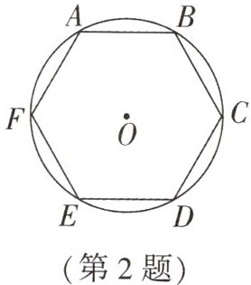 2. (2024·昭通月考)刘徽是中国古代卓越数学家之一,他在《九章算术》中提出了“割圆术”,即用内接或外切正多边形逐步逼近圆来近似计算圆的面积。如图,$\odot O$的半径为 6,则$\odot O$的内接正六边形 ABCDEF 的面积为____