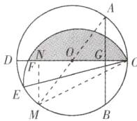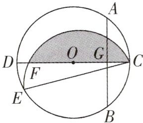 13. 如图,CD 是$\odot O$的直径,AB 是$\odot O$的弦,$AB⊥CD$,垂足为 G,$OG:OC= 3:5,AB= 8$.点 E 为圆上一点,$∠ECD= 15^{\circ }$,将$\overset{\frown}{CE}$沿弦 CE 翻折,交 CD 于点 F,图中阴影部分的面积为______.