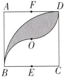 12. (枣庄中考改编)如图,正方形 ABCD 的边长为 2,O 为对角线的交点,点 E,F 分别为 BC,AD 的中点.以 C 为圆心,2 为半径作$\overset{\frown}{BD}$,再分别以 E,F 为圆心,1 为半径作$\overset{\frown}{BO},\overset{\frown}{OD}$,则图中阴影部分的面积为______