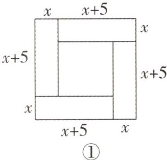 3. 我国三国时期的数学家赵爽在其所著的《勾股圆方图注》中记载了解方程$x^{2}+5x-14= 0(x>0)$,即$x(x+5)= 14(x>0)$的方法.首先构造了如图①所示的图形,图中的大正方形面积是$(x+x+5)^{2}$,其中四个全等的小矩形面积分别为$x(x+5)= 14$,中间的小正方形面积为$5^{2}$,所以大正方形的面积又可表示为$4×14+5^{2}= 81$,据此易得$x= 2$.