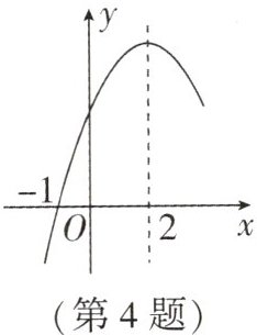 4. (2024·日照中考) 已知二次函数 $ y = ax^2 + bx + c $ ($ a \neq 0 $) 图象的一部分如图所示, 该函数图象经过点 $ (-1,0) $, 对称轴为直线 $ x = 2 $. 对于下列结论: ① $ abc < 0 $; ② $ a + c = b $; ③多项式 $ ax^2 + bx + c $ 可因式分解为 $ (x + 1)(x - 5) $; ④当 $ m > -9a $ 时, 关于 $ x $ 的方程 $ ax^2 + bx + c = m $ 无实数根. 其中正确结论的个数有 (