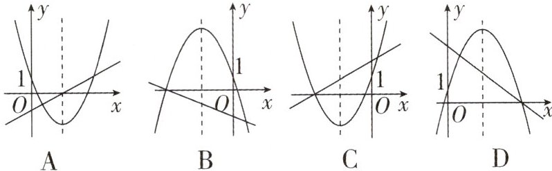 2. (深圳中考) 二次函数 $ y = ax^2 + bx + 1 $ 与一次函数 $ y = 2ax + b $ 在同一平面直角坐标系中的图象可能是(