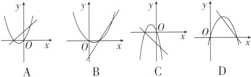 1. (江西中考) 在同一平面直角坐标系中, 二次函数 $ y = ax^2 $ 与一次函数 $ y = bx + c $ 的图象如图所示, 则二次函数 $ y = ax^2 + bx + c $ 的图象可能是 (