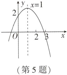 5. (2024·泰安中考) 如图所示是二次函数 $ y = ax^2 + bx + c $ ($ a \neq 0 $) 的部分图象, 该函数图象的对称轴是直线 $ x = 1 $, 图象与 $ y $ 轴交点的纵坐标是 2, 则下列结论: ① $ 2a + b = 0 $; ②方程 $ ax^2 + bx + c = 0 $ 一定有一个根在 $ -2 $ 和 $ -1 $ 之间; ③方程 $ ax^2 + bx + c - \frac{3}{2} = 0 $ 一定有两个不相等的实数根; ④ $ b - a < 2 $. 其中, 正确结论的个数有 (