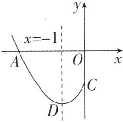 ∵二次函数图象开口向上,离对称轴越远函数值越大,$\therefore y_{1}>y_{2}$,故②不正确,不符合题意;作点C关于x轴对称的对应点$C'$,连接$C'D$,交x轴于点P,把$A(-3,0)$代入$y=ax^{2}+bx+c$得,$0=9a-3b+c$,