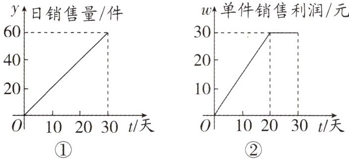 9. (益阳中考)某公司新产品上市30天全部售完,图①表示产品的市场日销售量与上市时间之间的关系,图②表示单件产品的销售利润与上市时间之间的关系,则最大日销售利润是____