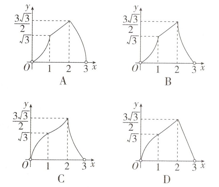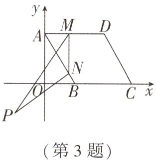 3. (2023·盘锦中考)如图,在平面直角坐标系中,菱形 $ A B C D $ 的顶点 $ A $ 在 $ y $ 轴的正半轴上,顶点 $ B, C $ 在 $ x $ 轴的正半轴上, $ D(2, \sqrt{3}) $, $ P(-1,-1) $.点 $ M $ 在菱形的边 $ A D $ 和 $ D C $ 上运动(不与点 $ A, C $ 重合),过点 $ M $ 作 $ M N / / y $ 轴,与菱形的另一边交于点 $ N $,连接 $ P M, P N $,设点 $ M $ 的横坐标为 $ x, \triangle P M N $ 的面积为 $ y $,则下列图象能正确反映 $ y $ 与 $ x $ 之间函数关系的是 (