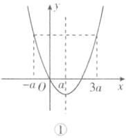 (2) 分两种情况:抛物线的对称轴是直线 $ x = -\frac{-2a^{2}}{2a} = a $;当 $ a > 0 $ 时,如图①,此时 $ 3a < 3 $,