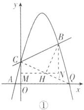 (3)第一象限内的抛物线上有一动点M,过点M作$MN⊥x$轴,垂足为N,连接BC交MN于点Q,依题意补全图形.当$MQ+\sqrt {2}CQ$的值最大时,求点M的坐标.