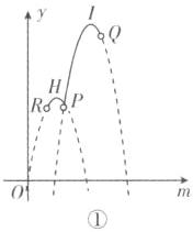 解析:$ \because y = \left\{\begin{array}{l}-2m^2 + 6m = -2\left(m - \frac{3}{2}\right)^2 + \frac{9}{2}(1 < m < 2),\\-2m^2 + 14m - 16 = -2\left(m - \frac{7}{2}\right)^2 + \frac{17}{2}(2 < m < 4),\end{array}\right. $ 其图象如图①所示,$ \therefore H\left(\frac{3}{2}, \frac{9}{2}\right) $,$ I\left(\frac{7}{2}, \frac{17}{2}\right) $,当 $ m = 1 $ 时,$ y = -2×1^2 + 6×1 = 4 $,当 $ m = 2 $ 时,$ y = -2×2^2 + 14×2 - 16 = 4 $,当 $ m = 4 $ 时,$ y = -2×4^2 + 14×4 - 16 = 8 $,$ \therefore R(1, 4) $,$ P(2, 4) $,$ Q(4, 8) $,当 $ 4 < t_1 < \frac{9}{2} $ 时,直线 $ y = t_1 $ 与函数 $ y $ 的图象有 $ 3 $ 个交点。