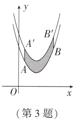 3. (2024·长春期末) 如图,在平面直角坐标系中,将函数 $ y = \frac{1}{2}(x - 3)^{2}+2 $ 的图象沿 $ y $ 轴向上平移得到一条新函数的图象,其中点 $ A(1,m) $,$ B(6,n) $ 平移后的对应点分别为点 $ A' $,$ B' $. 若图中的阴影部分图形的面积为 10,则新函数的解析式为____.