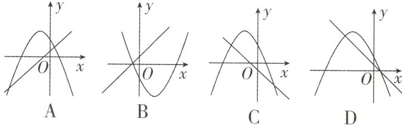 3. (东营中考)一次函数 $ y = a x + b ( a \neq 0 ) $ 与二次函数 $ y = a x ^ { 2 } + b x + c ( a \neq 0 ) $ 在同一平面直角坐标系中的图象可能是 (