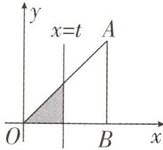 2. 如图,在 $ \mathrm { Rt } \triangle A O B $ 中,$ A B \perp O B $,且 $ A B = O B = 3 $,设直线 $ x = t $ 截此三角形所得阴影部分的面积为 $ S $,则 $ S $ 与 $ t $ 之间的函数解析式为 (