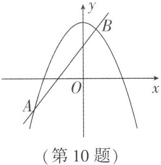 10. (贺州中考改编)如图,已知抛物线 $ y = a x ^ { 2 } + c $ 与直线 $ y = k x + m $ 交于 $ A ( - 3, y _ { 1 } ) $,$ B ( 1, y _ { 2 } ) $ 两点,则关于 $ x $ 的不等式 $ a x ^ { 2 } + c \geq - k x + m $ 的解集是