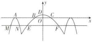 解析:建立如图所示的平面直角坐标系,由题意可得 $MN = 4$,$EF = 14$,$BC = 10$,$DO=\frac{3}{2}$,设大孔所在抛物线的解析式为 $y = ax^{2}+\frac{3}{2}$。