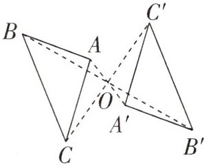 1. 如图,已知$\triangle ABC与\triangle A'B'C'关于点O$成中心对称,则下列判断不正确的是 (