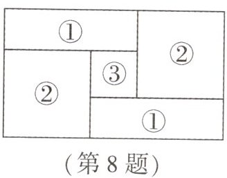 8. 如图,小明家的住房平面图呈长方形,被分割成3个正方形和2个长方形后仍是中心对称图形.若只知道原住房平面图长方形的周长,则分割后不用测量就能知道周长的图形标号为 (