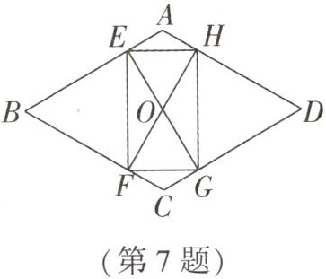 7. (安徽中考)如图,在菱形ABCD中,$AB= 2$,$∠A= 120^{\circ}$,过菱形ABCD的对称中心O分别作边AB,BC的垂线,交各边于点E,F,G,H,则四边形EFGH的周长为 (