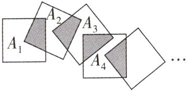 4. 如图,将n个边长都为1 cm的正方形按如图所示摆放,点$A_{1},A_{2},...,A_{n}$分别是正方形的中心,则n个正方形重叠形成的阴影部分的面积和为