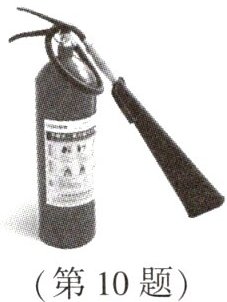 10. (2024·无锡宜兴树人学校期中)如图,常用灭火器中装有二氧化碳液体,是将二氧化碳气体在常温下采用______(填“压缩体积”或“降低温度”)的方法装入其中的。当打开阀门,会发生______现象,此时需要______热,所以手不要握住瓶身,以防______(填“冻伤”或“烫伤”)。
