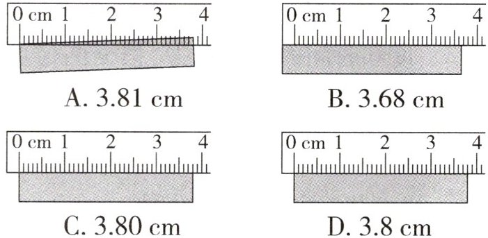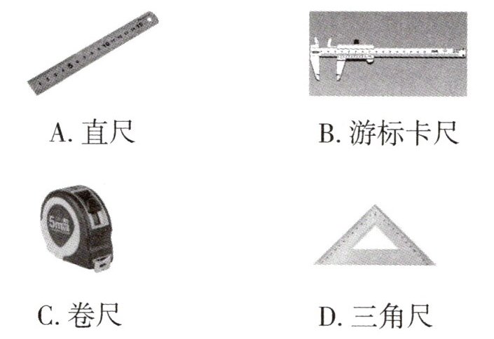 C 解析:教室门的高度大约为 2.5 m,宽度大约为 1 m,而四款测量工具中,直尺、游标卡尺、三角尺的量程较小,无法一次测量教室门的高度和宽度,只有卷尺的量程较大,可以一次测量教室门的高度和宽度,故 C 符合题意,ABD 不符合题意。故选 C。