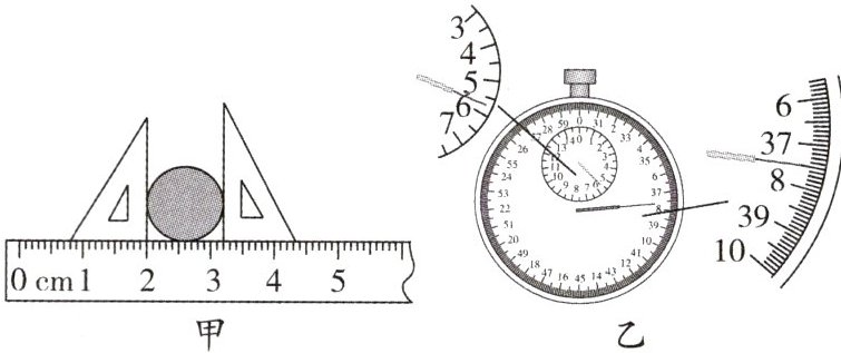 7. (2024·扬州仪征市期末)如图甲所示,圆形物体的直径为______cm;如图乙所示,秒表的读数为______s.