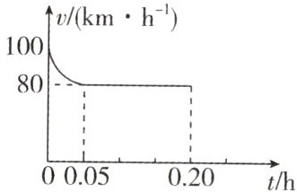 变速 $ 82.5 $ 解析:由图可知,小王在 $ 0 \sim 0.05 \, \text{h} $ 内,速度在不断地发生变化,因此做的是变速直线运动.由图可知,小王在 $ 0.05 \sim 0.20 \, \text{h} $ 行驶速度为 $ 80 \, \text{km/h} $,行驶的路程为 $ s_2 = v_2 t_2 = 80 \, \text{km/h} \times (0.20 \, \text{h} - 0.05 \, \text{h}) = 12 \, \text{km} $,