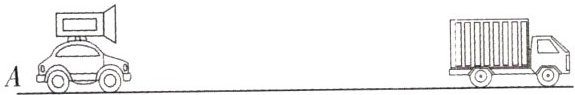 小车从警车发出信号到信号到达小车又行驶了 $ 0.27 \, \text{s} $,则小车的速度为 $ v_{\text{车}} = \frac{s'}{t_{\text{声}}} $,