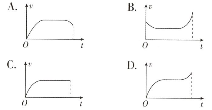 A 解析:由题可知,他在比赛中经历了加速起跑、匀速途中跑和略有降速的冲刺三个阶段,所以他的速度先增大,后不变,然后略变小一些,所以能正确反映比赛过程的是 A 项中图像.
