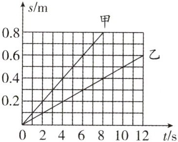 3. 核心素养 科学思维 甲、乙、丙三辆玩具小车同时同地在同一直线上做匀速运动,如图所示为甲、乙的 $s - t$ 图像,甲的速度为 ______ $m/s$;运动 $6s$ 时,甲、乙的距离为 $0.9m$,甲、乙的运动方向 ______ (填“相同”或“相反”);若运动 $12s$ 时,丙、乙两车相距 $0.5m$,则丙的速度 ______ (填“一定”“可能”或“不可能”)小于甲的速度.