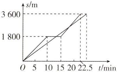 4. 小昭家与图书馆的距离为 3 600 m. 周末, 小昭和爸爸同时从家骑自行车去图书馆. 爸爸先骑行 10 min, 中途休息了 5 min, 再骑行 7.5 min 到达图书馆. 小昭始终以 2.4 m/s 速度骑行, 两人行驶的路程 s 与时间 t 的关系图像如图所示.