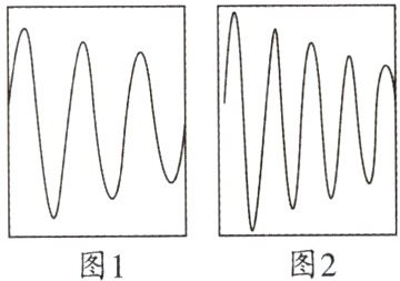 9. 将声音信号输入示波器,可观察声音的波形,小珠敲击标有“512Hz”的音叉,得到波形如图1所示,她____(填“能”或“不能”)听到该频率的声音;再敲击另一个标记模糊的音叉,波形如图2所示,则该音叉的频率____(填“大于”“等于”或“小于”)512Hz,观察该波形图,可发现在传播过程中声音的____(填声音的特性)改变了.