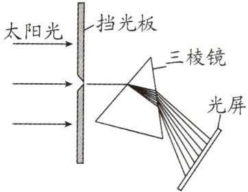 6. 如图所示,让一束太阳光通过挡光板的狭缝照射到三棱镜的一个侧面上,用光屏接收从三棱镜的另一侧出射的光线.