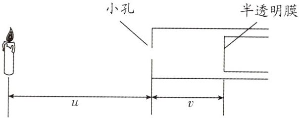 (1) 图中的实验装置是探究小孔成像原理的装置,小孔成像的原理是光的直线传播,所以蜡烛在半透明膜上成像的原理是光的直线传播.