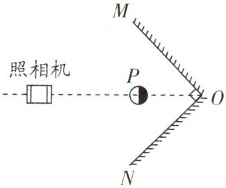 8. 核心素养 科学思维 (2024·无锡积余学校期中)如图所示,平面镜OM与ON垂直放置,在它们的角平分线上P点处,放有一个球形发光物体,左半部分为白色,右半部分为黑色,在P点左侧较远的地方放有一架照相机,不考虑照相机本身在镜中的成像情况,则拍出照片的示意图正确的是(