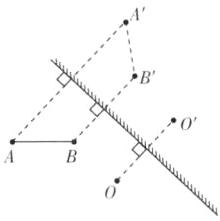 解析:物和像关于镜面对称分布,将O点和它的像点连线,作它们连线的中垂线即为平面镜的位置.而AB的像也是和AB关于镜面对称分布的,同样物像连线被平面镜垂直平分,分别作出A、B的像点,连接起来就是AB的像.