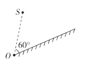 6. 核心素养 科学思维 如图所示,平面镜前有一发光点S,平面镜可以绕O轴转动,已知发光点S与轴O的距离$SO= 12cm$,$SO与镜面的夹角为60^{\circ }$.此时,S与它的像之间的距离为____cm(保留根号);当镜面绕轴O顺时针转动$60^{\circ }$的过程中,发光点S在镜中的像与O轴的距离将____,发光点S与镜中像的距离将____(以上两空填写大小变化情况);S的像运动轨迹的长度为____cm(保留π).