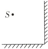 C 解析:S在竖直的平面镜中成的像为$S'$,在水平的平面镜中所成的像为$S_{0}$;$S'$在水平的平面镜中成的像为$S''$,而$S_{0}$在竖直的平面镜中所成的像也是$S''$,即再次成像的像点是重合的,所以一共有3个像,如图所示: