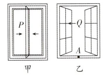 5. 核心素养 科学思维 (2024·南京玄武区期中)如图所示是生活中的两种窗户,甲图窗户可在直线轨道上左右平移,乙图窗户可绕固定轴转动,如果你站在窗户前,能通过玻璃看到你的像,若将甲图窗户左右平移打开,则你在P窗户中的像将____(填“随”或“不随”)窗平移;乙图Q窗户可开窗转动$150^{\circ }$,则窗框上的A点与A点在Q窗中的像之间距离在开窗过程中将____,同时A点的像移动轨迹是____(填“直线”或“曲线”).