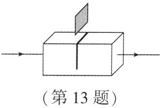 13. (2025·镇江新区期中)如图所示,魔术箱顶部的中央有一条窄缝.使激光笔产生的激光束从左侧的小孔射入,从右侧小孔射出.将一块遮光板从顶部的窄缝插入箱中,它并没有挡住激光束的传播.若魔术箱内只使用了平面镜,根据这一现象,下列猜想合理的是 ()