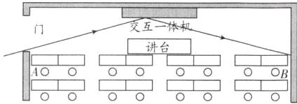 镜面 B 解析:一体机屏幕相当于是平面镜,晴天会有部分学生从一体机屏幕中看到门窗外景物的像,此时是在一体机屏幕发生了镜面反射.根据光的反射定律知道,由门射入到屏幕的光线会反射向B侧,这样B会通过一体机屏幕看到门外景物的像.大致光路如图: