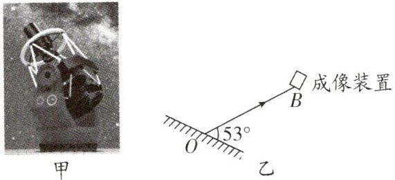 7. (2024·南充中考)2023年9月17日,我国墨子巡天望远镜正式启用,它是北半球巡天能力最强的光学时域望远镜,如图甲所示.一束星光入射到望远镜,经主镜反射后到达成像装置,如图乙所示,OB是反射光线,请画出其入射光线AO并标出入射角大小.