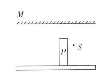 6. (2024·南通海安市质检)如图,在某房间的天花板上装有平面镜M,S为一灯泡,P为不透明的墙,请画出灯泡发出的光经平面镜反射后,能够照亮P墙左侧区域的光路图.
