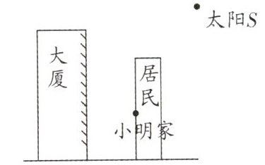 5. 大厦右边镀膜的玻璃外墙把太阳光反射到小明家,小明看到太阳的像S'(大致如图所示),这是一种光污染.画出太阳光经过玻璃外墙到达小明家的光线.(保留作图痕迹)
