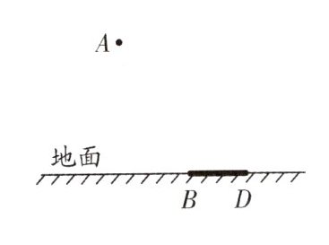解析:由于光在同种均匀介质中是沿直线传播的,当光照射到竹竿BC上时,光线被遮挡,在竹竿的右边光照射不到的地方形成影子BD;连接AD,从B点垂直地面向上画直线交AD于C,可得竹竿BC.