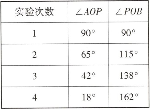 (3)∠AOP逐渐变小,说明入射光线AO靠近平面镜,远离法线ON.∠AOP与∠POB的补角∠BOQ相等,则∠AOP的余角与∠BOQ的余角相等,即∠NOB与∠AON大小相等,它们分别是反射角和入射角,可知,反射角等于入射角.