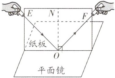 4. (2024·武汉中考)如图所示,为了探究光反射时的规律,把一个平面镜放在水平桌面上,再把一张纸板 ENF 竖直地立在平面镜上,纸板 ENF 是用两块纸板连接起来的,纸板 NOF 可以向前或向后折.下列说法正确的是()